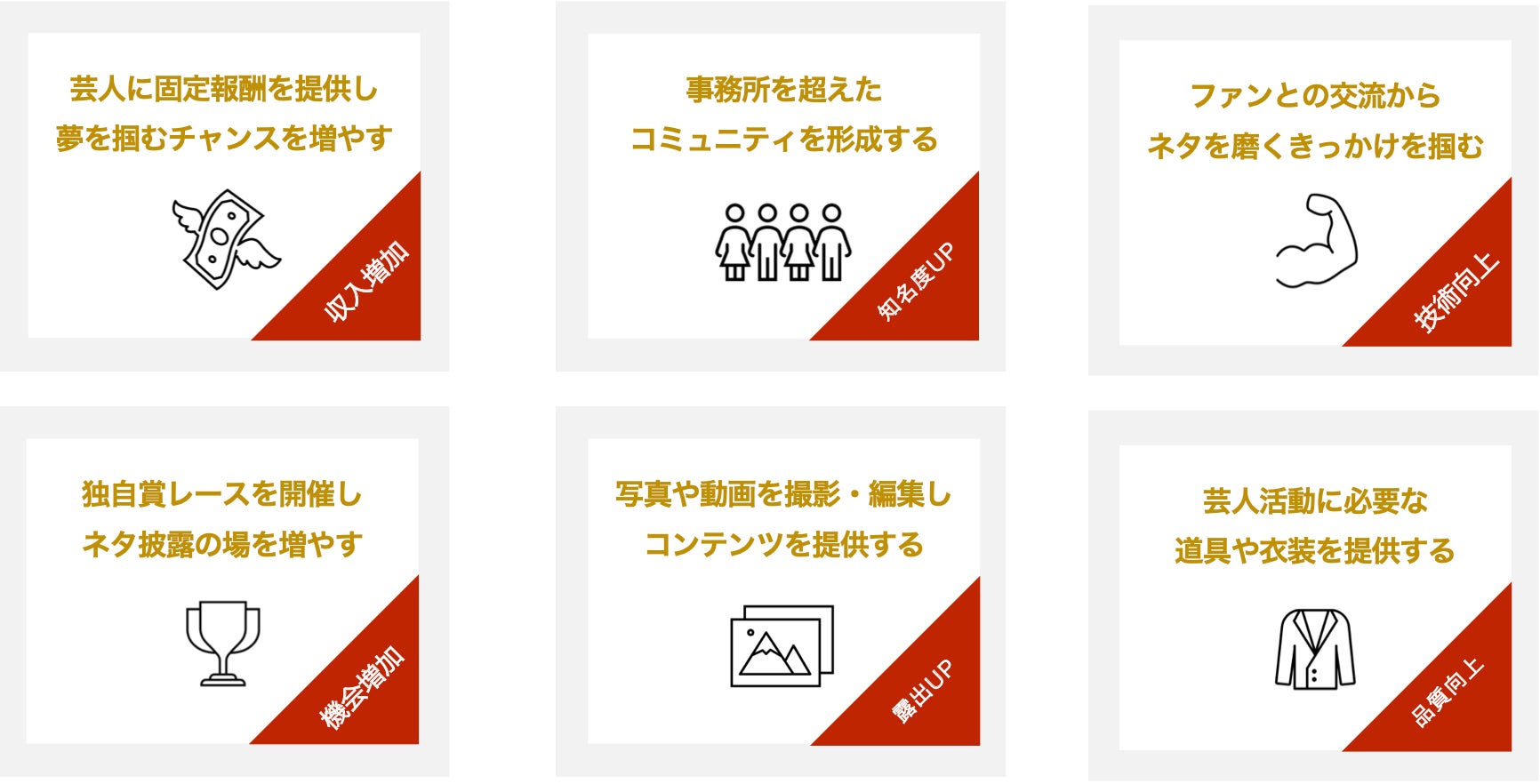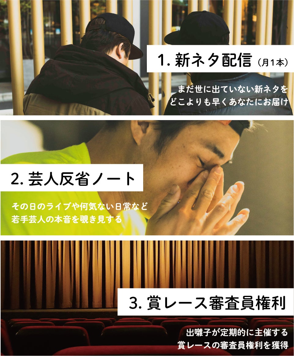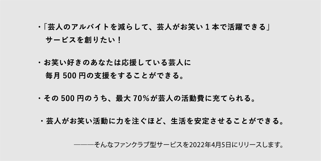 ここからは、どうやって芸人を支援していくのかについてと、今回ご支援くださる皆様へのメリットなどをお伝えしていきます。