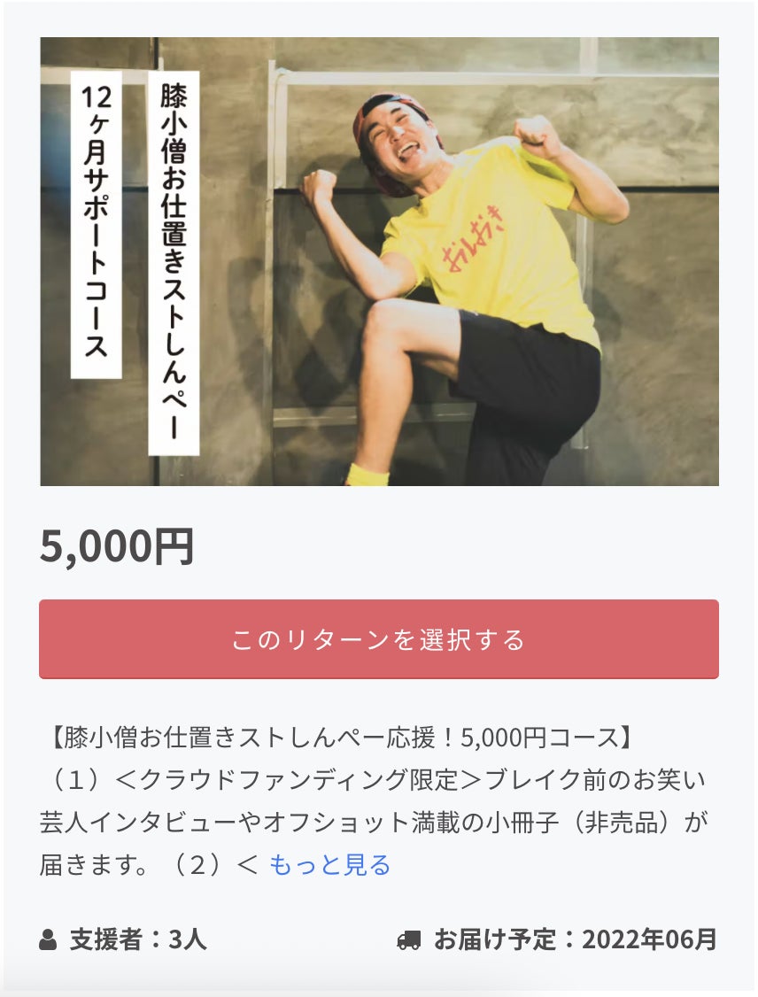 『プロジェクトを支援する』から膝小僧お仕置きストしんぺーを応援する