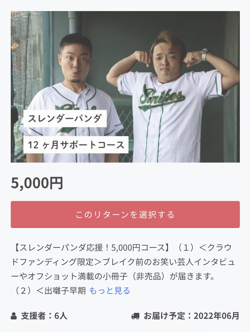 『プロジェクトを支援する』からスレンダーパンダを応援できます