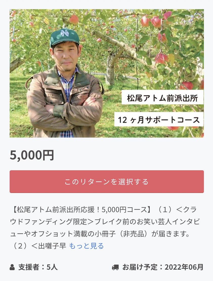 『プロジェクトを支援する』から松尾アトム前派出所を応援できます
