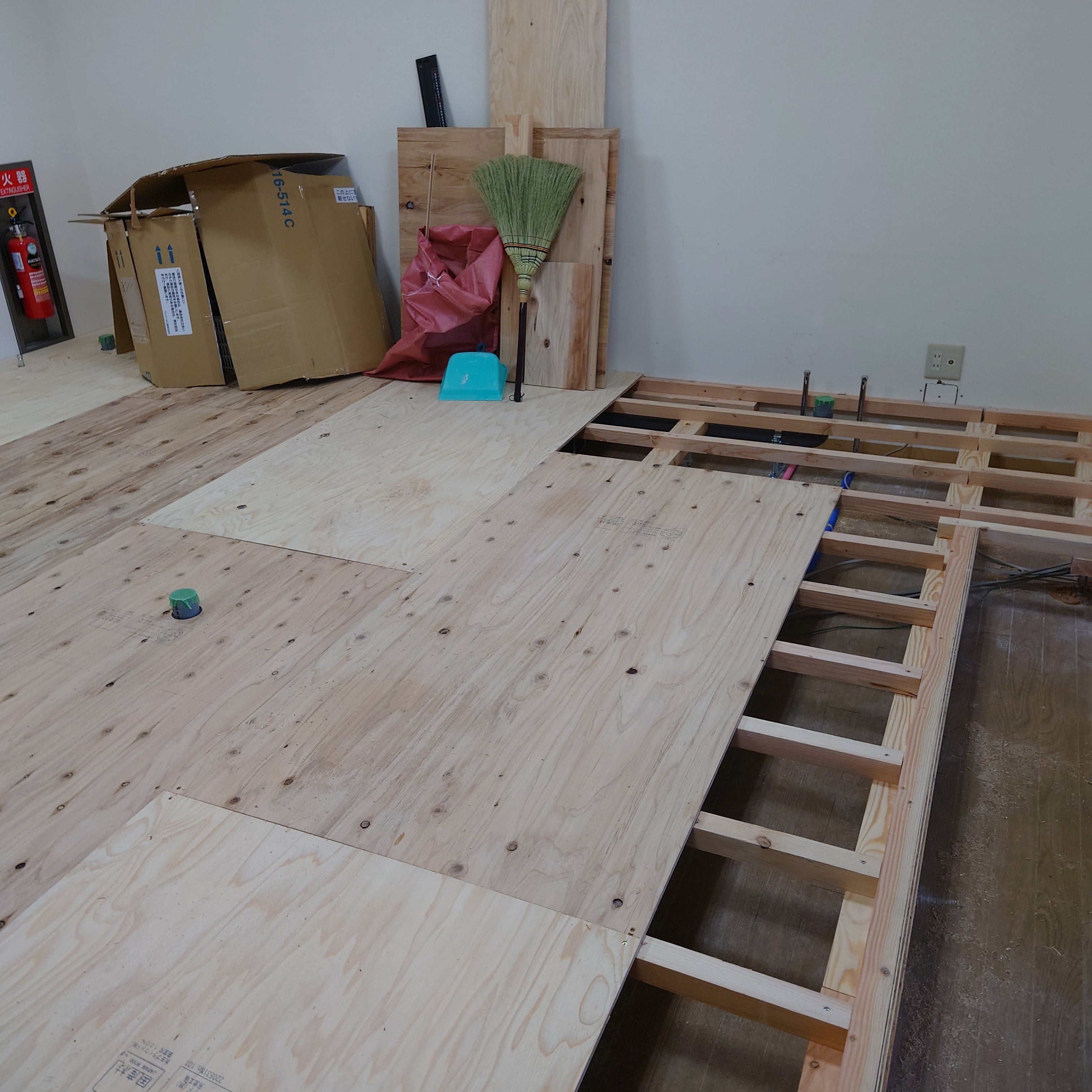 今月中旬から厨房部分の工事が始まって昨日床を貼る作業をしていました。