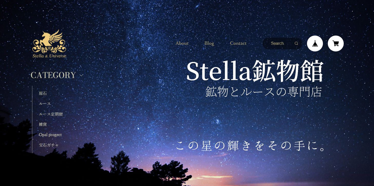 ◆Stella鉱物館店主の柴山と申します。当店は星空や宇宙をテーマに、地球が育んだ美しい鉱物をネットで販売しています。掘り出したままの原石、原石をカットしたアクセサリー加工前のルース、また鉱物を楽しむための雑貨をラインナップしています。