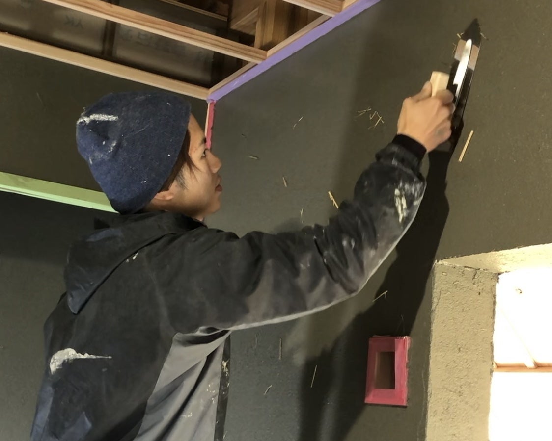 僕は沖縄で、地元の素材を使った壁仕上げや、モノづくりをしている左官職人、岡田彰真です。