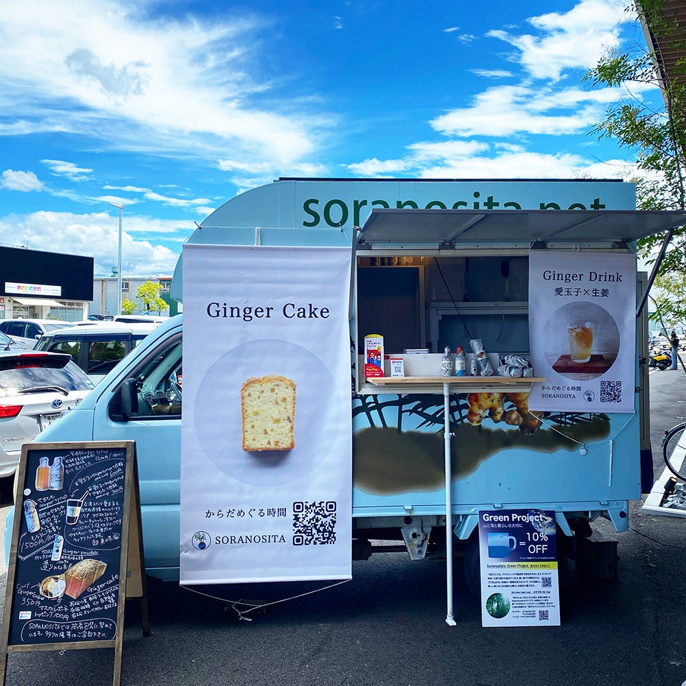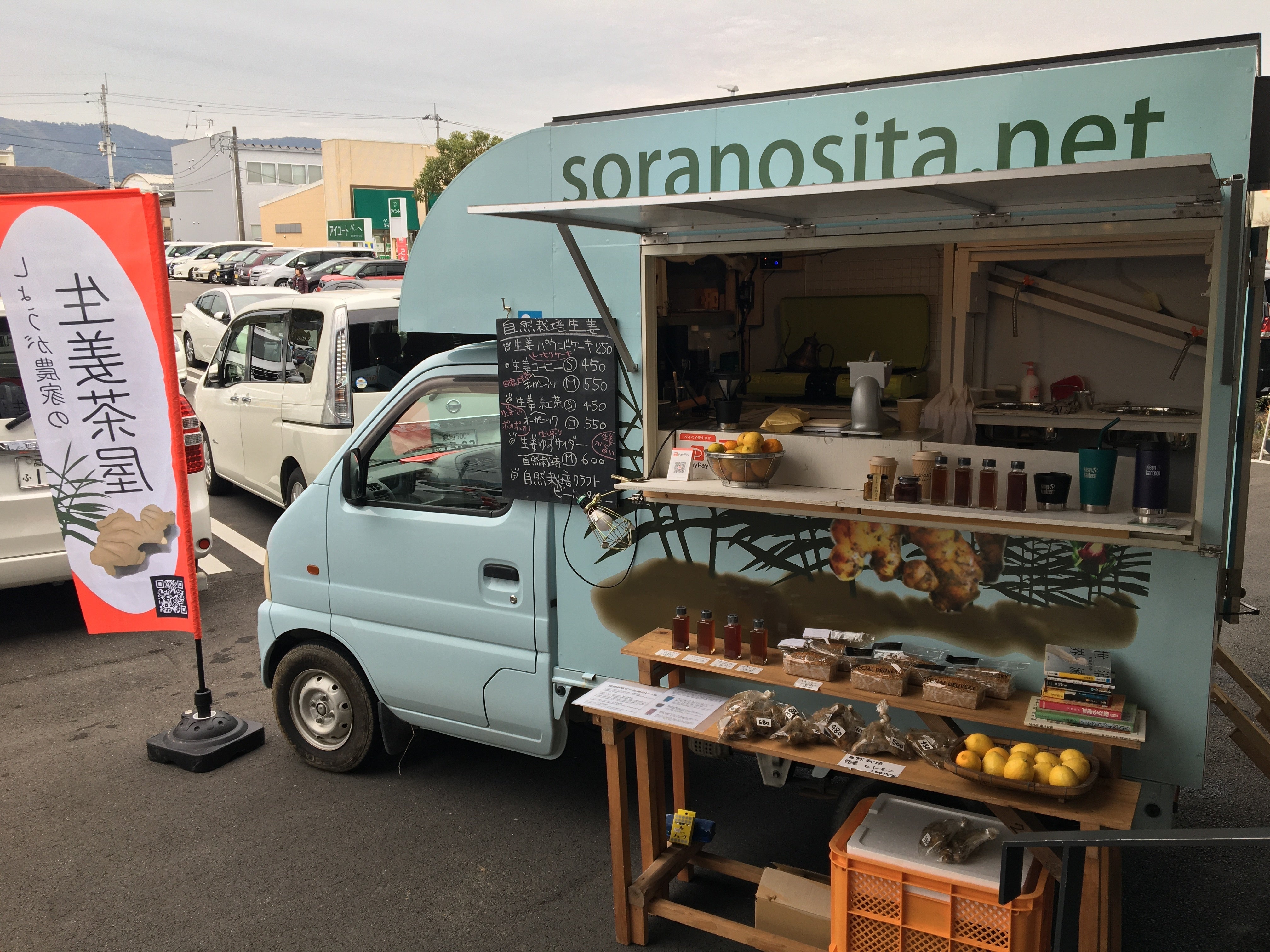 2020/01/25 19:11大変ご無沙汰しております。2020年1月25日、高知市内に最近できた蔦屋書店でキッチンカー営業始めました。2019年の秋に、やっとこソーラー発電システムを完備、エンゲルのポータブル冷蔵冷凍庫やその他の小物なども揃い、晴れて営業を開始しました。実は蔦屋書店での営業が初めての営業ではなく、2019年の年末に私が住む中土佐町の集落で2日営業をしました。私はかねてより、移住してからお世話になっている地元の集落でキッチンカー営業をしたいと思っておりました。海と山と田んぼと畑以外は何もないところですが、だからこそお店をやりたかったのです。何かわからないけど、一つの小さな光が小さなキッチンカーから広がるといいなーと想像していましたし、お世話になっている集落の皆さんに、移住後私がやり続けている事を見て欲しかったという思いもありました。お陰様で、なんの告知もしなかったにも関わらず、口伝えで空の下のキッチンカーに立ち寄ってくださり、生姜サイダーやパウンドケーキを振舞うことができました。その時の事をブログに書きましたので、お時間があれば是非ご一読ください。https://sora-no-sita.blogspot.com/とにかく、目の前に立ちはだかる高ーい壁をギリギリで乗り越えて今日の日を迎えました。ソーラー発電システムやポータブル冷凍冷蔵庫は、商工会の小規模事業者持続化事業を活用させていただきました。3回目の申請という事で、大変難しいと言われましたが、担当の方のお力添えのお陰で採択され、システムの7割を補助していただきました。ソーラーシステムの設計から設置までを省エネ組の木村俊雄さんにお願いして完璧な仕様に。ポータブル冷凍冷蔵庫から、灯、PC、携帯充電など、なんのストレスもなく活用させてもらっています。http://jiene.net/はよ営業しなければ!と追い詰められたところで、不意に浮かんだのが高知市内の蔦屋書店です。蔦屋書店のある場所は、今高知でもっともイケてるエリアで新しいお店が続々とできている場所。この時まで全く頭になかったのですが、ひょんな事で思いついたところから、担当の方に繋がるまでは超早でした。これもご縁をいただいた方々のお陰です。土壇場でいつも人に助けられています。本当にありがたいです。昨年末に営業した地元でも、以前から気になっていた空き地を貸してもらうことが出来たことも本当にラッキーでした。一度も会ったことのない地主さんでしたが、「いつ使ったもいいよ」と快く言って頂いて感謝感謝です。いつかお礼する機会が訪れる事を願っています。「こうしたい、こうなったらいいな」が一つ一つ形になっていくこの時間に、感謝の気持ちが湧いてきます。今日の蔦屋書店での営業に当たっても、「正直ここは売れませんよ」と初めから言われたんです。でも、担当の方の「私たちも日々模索しながらやっているので、一緒に成長できるお店に出店してもらいたい」との言葉が「私もそう願っています!」的な、「それで良いです」でした。空の下的にも、売り上げを直ぐに求めるよりも、長期的に取り組んで、真に必要とされるショップに成長する事を目的としています。お陰様で、ここ蔦屋書店での営業は大変心地よく、ゆるりとした中でも良い感じでお客様がきて下さっています。今年に入り、私は以前より増して生姜の知識が増えています。新たに得られた生姜の効能に関する文献も大変興味深く、益々生姜に魅了されています。生姜はショウガオールとジンゲロールが主な成分で、どちらも辛味成分で体を温める効果があります。ジンゲロールよりもショウガオールの方が辛味が強く、その分、体温め効果も高いのですが、全体の含有量はジンゲロールの方が圧倒的に多く、結果的に私たちが食べて「美味しい」と思う適度な辛味が保たれ、世界中の多くの料理の食材や薬として使われています。また、ショウガオールとジンゲロールは寿命を延ばす効果があることが近年科学的に証明されています。人と60パーセントの共通遺伝子を持ち、24時間で一生を終える線虫にショウガオールとジンゲロールを与えたところ、24時間を超えて生きることが明らかになりました。更に、ストレスを取り除く働きをする体内酵素を活性化する効果があることも分かっています。体内の活性酸素を除去し、生命の寿命を延ばすのです。痛みをとる薬や、熱を下げる薬はあれど、体を温めて冷えを治す薬はありません。また、現代を生きる私たちを取り巻く様々なストレス、これを和らげる効果が生姜にはあるのです。Gingerは英語で、元気づける、活気づける、励ますという意味があり、まさに生姜の力そのものですね。空の下では、毎日生姜を食べたくなるような商品作りに取り組んでいます。美味しく食べるだけで勝手に健康になる!そんな世界を目指しています。今年も更に具体的に事を運んで行きたいと思いますので、どうぞ引き続き『空の下』にご注目ください。なんの力もない