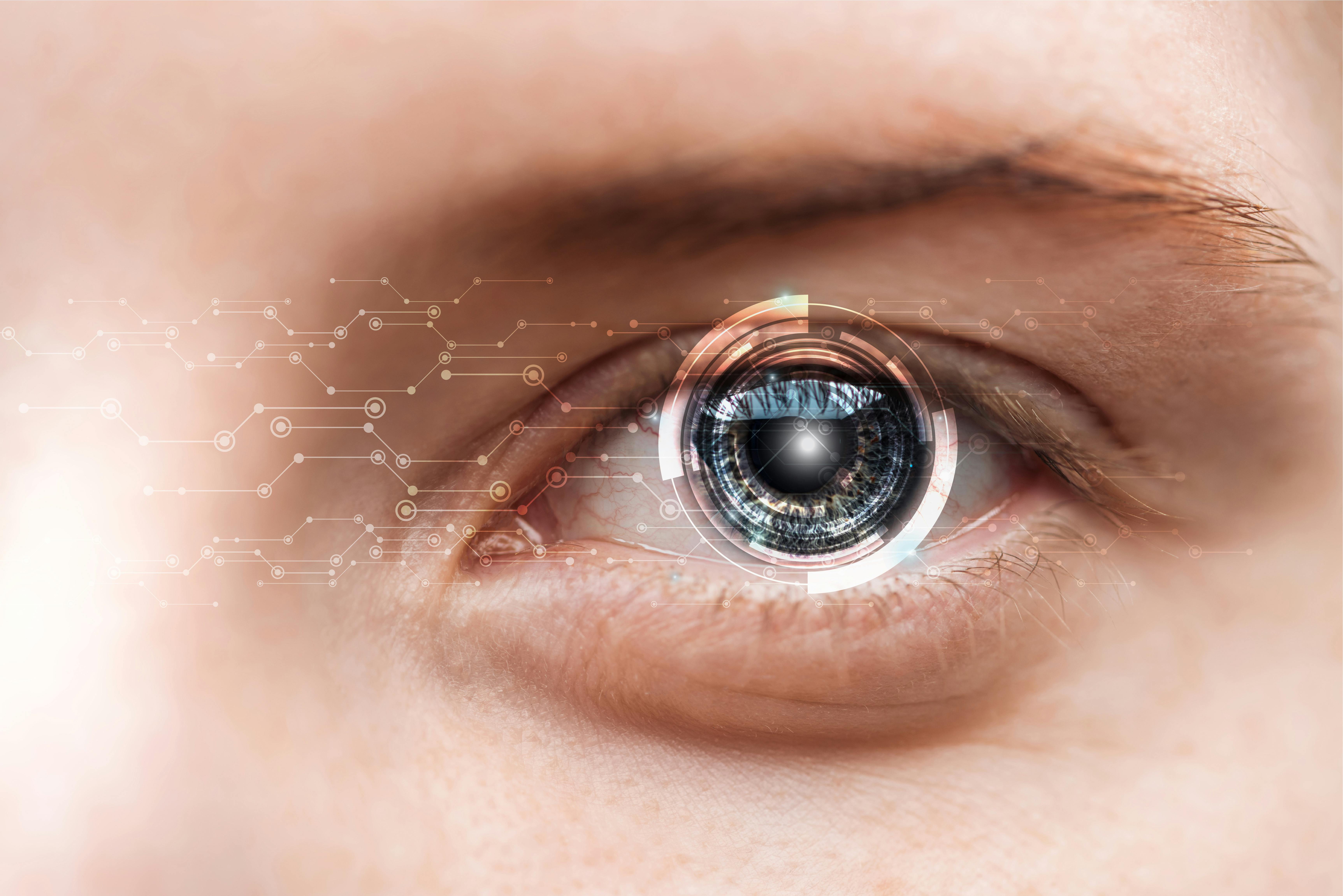 虹彩とは眼球の色がついている部分を指します。真中の黒い部分が瞳孔で、その周りのドーナツ状に模様があるところが虹彩です。視力の状態にかかわらず、虹彩の模様はひとりひとり異なり、個人の識別(虹彩認証)に利用されています。3歳ころまでに模様は完成し、生涯安定するとされています。