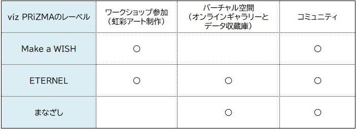 víz PRiZMAでは、ニーズにあわせた3つのレーベルをご用意しています。今回のリターンは、「Make a WISH」と「ETERNAL」よりお届けします。