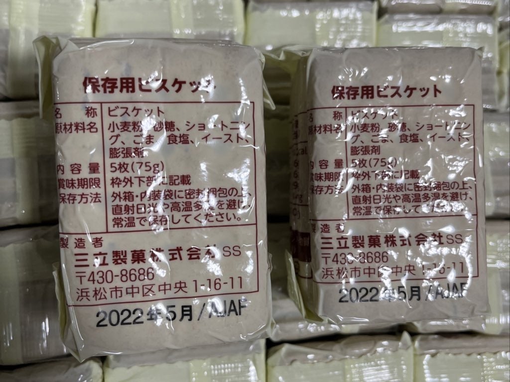 大阪府大東市にある会社様から、保存用ビスケット2箱(120個)をご寄付いただきました5月の物資配布の時に合わせてお渡しします