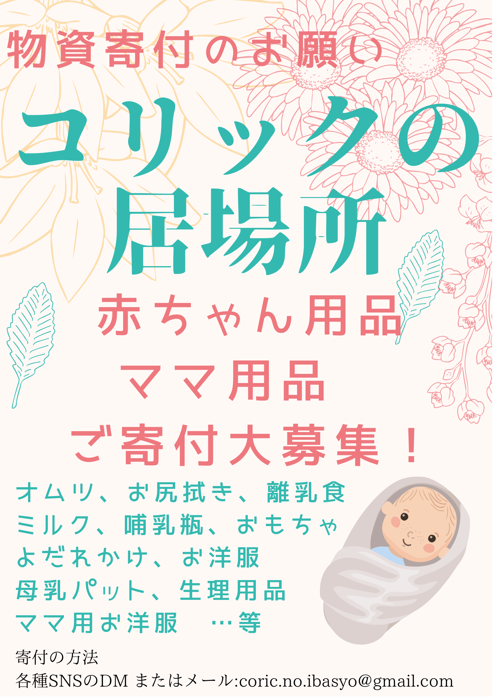 来週GW前ぐらいにオムツとお尻拭きの配布を行おうと思います。