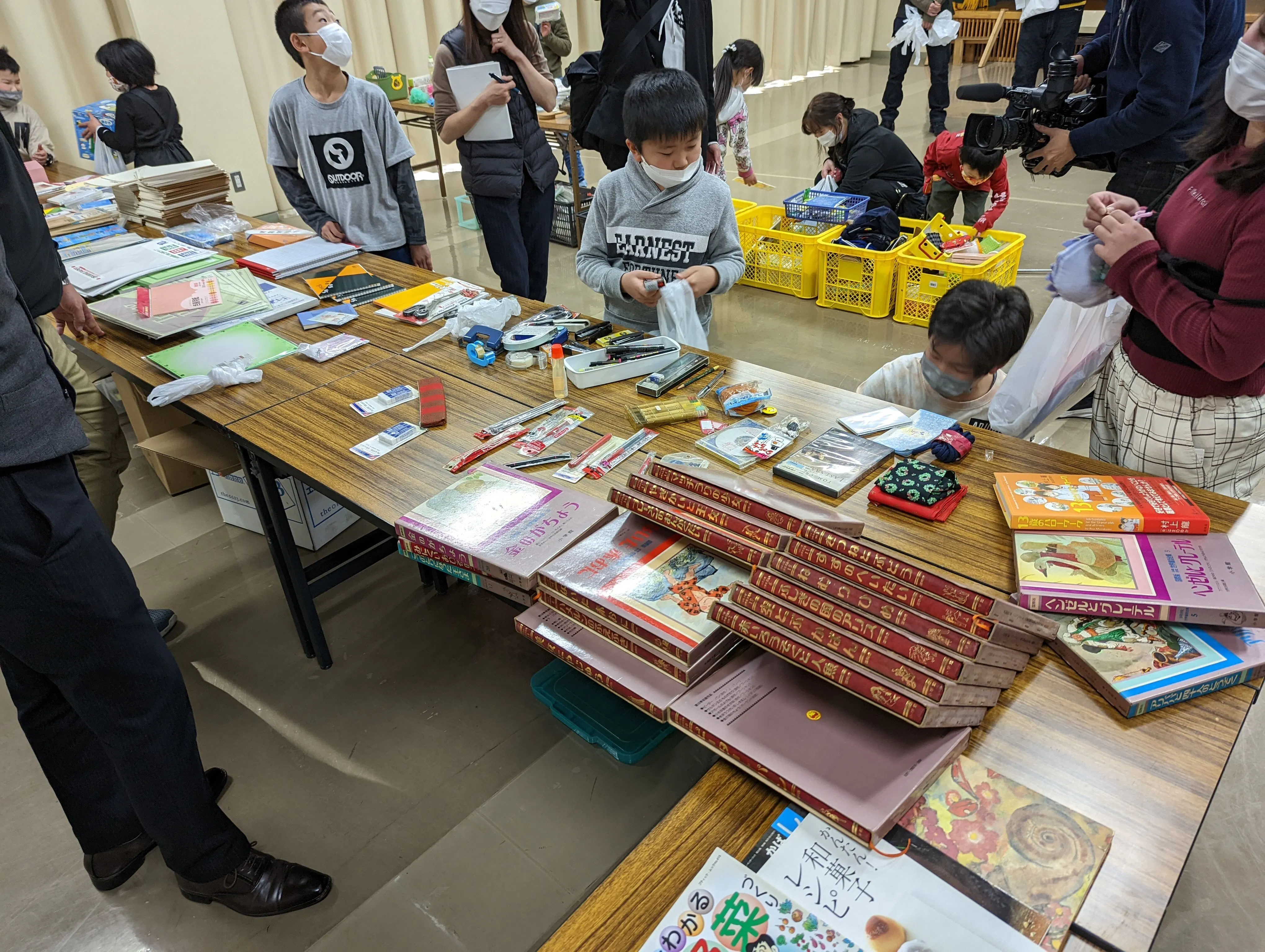 2~3か月に一度、定期的に集まった文具や生活用品、家電製品などの再利用できるものを市民センターや子ども食堂等へ持参して直接配布したり寄付をし、必要としている子どもたちやご家族に無償でお渡ししております。