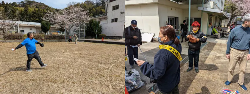 作業後の休み時間にはグラウンドでみんな楽しみにしている野球をやったりしています。