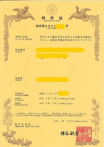 今回開発を進めているスマホアプリの最大のアピールポイントは、相手が何語を話すか分からなくても、お互いの自国語の音声で翻訳する機能特許で取得したことです。
