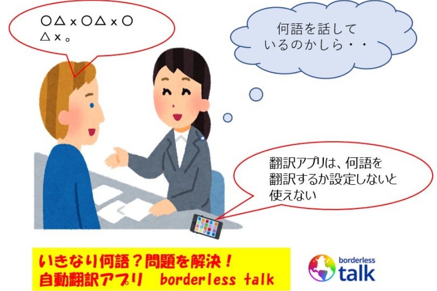 外国人観光客受け入れ緩和が進む中、今回、私どもアラウンド・イノベーションでは、2021年3月に取得した特許を利用した「自国語同士で会話をする」ことを目的としたスマホアプリ(ボーダーレストークⓇ/borderless talkⓇ)の開発を進めています。