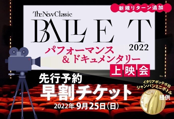 奥田祥智監督デビュー映画『BALLET TheNewClassic 2022パフォーマンス&ドキュメンタリー』の上映と、監督、ダンサーなどによるトークショーに、お土産のシャンパンミニボトル付です。