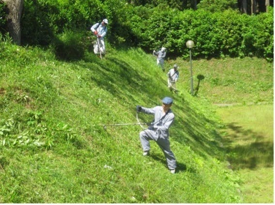 1a(アール)は広さ10m×10mですが、通常の人力による斜面の草刈りでは、ベテラン作業員の方の作業効率が3a程と言われており、慣れていない方だと1a程となります。