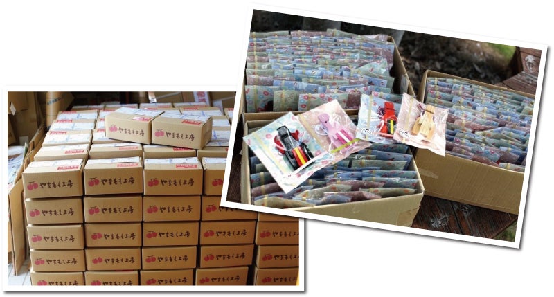 そして踊り子さん達を華やかにする、鳴子を付けた髪飾りなど祭りに華を添える鳴子グッズもまた一番最初に作り、YOSAKOIソーランや原宿表参道元氣祭スーパーよさこい、能登よさこい祭り、坂戸よさこい、あっぱれ富士などなど、直接出店、委託販売も多数、やまもも工房はよさこい祭りと共に歩んで来ました。