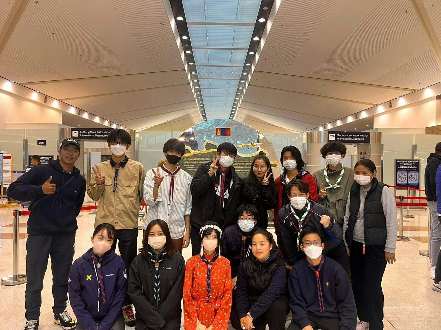 2022/10/01 21:128日目は早朝からバスに乗り、チンギスハーン空港へと向かいました。チンギスハーン空港でモンゴルスカウトに最後のお別れの挨拶をして、飛行機に乗りこみました。遠く小さくなっていくモンゴルの大地に寂しさを感じながらも、達成感と疲労感から気づけば眠りについていました。飛行機は無事韓国の仁川国際空港に到着し、その日はトランジットエリアで各々好きなように過ごしました。既にメンバーは大家族のような雰囲気をまとっており、皆との旅がまもなく終わるという事実に切なさを覚えながらその日は眠りにつきました。 もっと見る