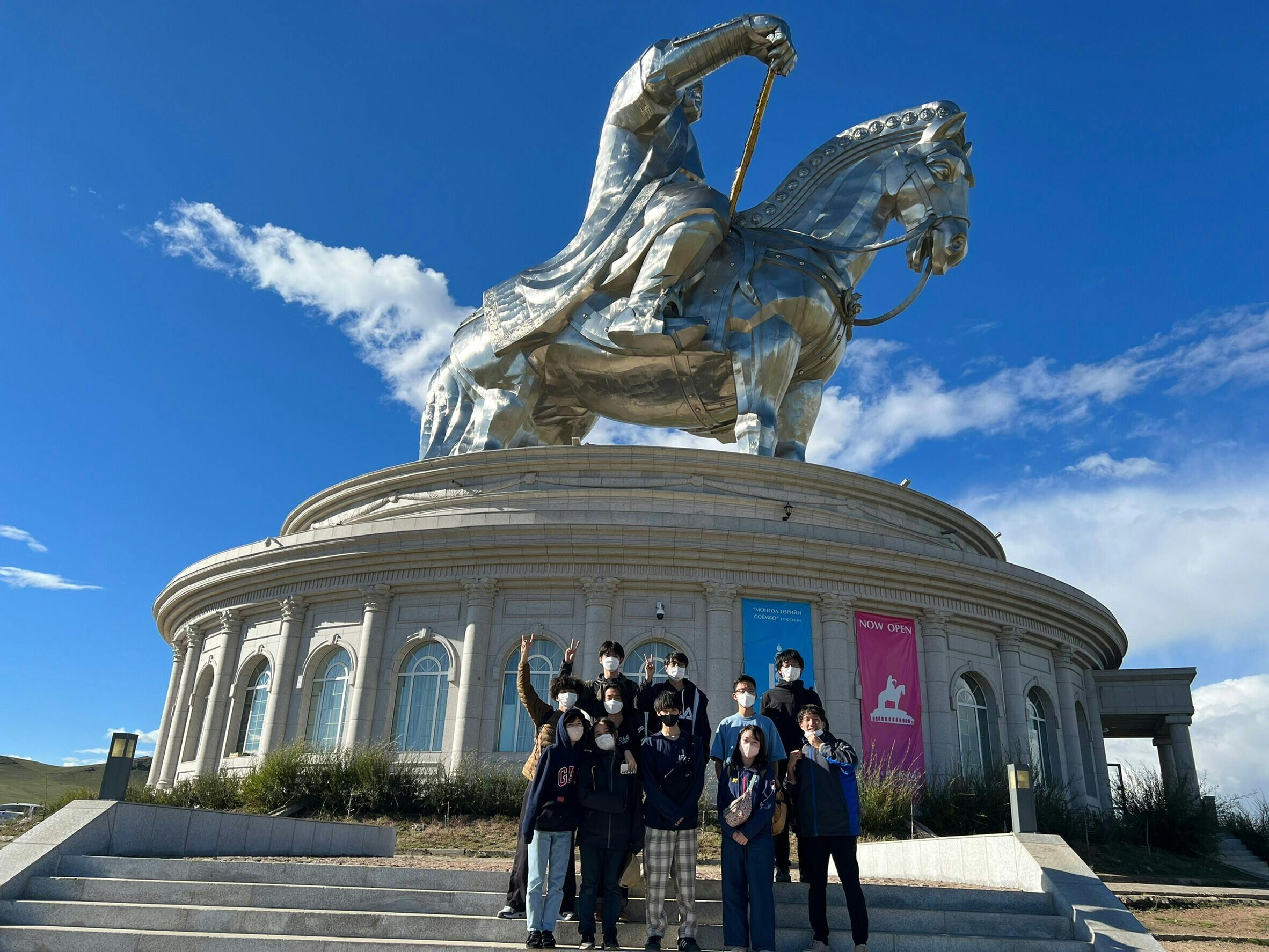 6日目は帰国に必要なPCR検査を受けにいきました。その後、モンゴルスカウトの車に乗せてもらい、ウランバートルから少し離れた郊外に位置するテレルジに向かいました。最初に訪れたチンギスハーンの騎馬像は想像より何倍も大きくて、その存在感に圧倒されました!更に車で移動して、タートルロックでは馬とラクダに乗って散歩を楽しみました。モンゴルの雄大な自然を肌で感じることが出来て、最高の思い出になりました!その後、無事PCR検査も全員陰性と知らせが届き、夜にはゲルでモンゴルスカウトが作ってくれたモンゴル料理をいただきました。(以前教えて貰った歌に登場したモンゴル料理、「ツィヴァン」を作ってくれました!) お腹いっぱい食べた後は、ゲルの中で暖をとりながらお喋りをしたり、外で騎馬戦をして遊んだり、それぞれが思うように楽しいひとときを過ごしました。満点の星空の下で時間を共にして、更に心の距離が縮まったように感じると同時に、もうすぐ来るお別れの日を思って切ない気持ちになりました。