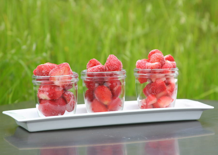 朝摘みしたあまおうをその日のうちにクイックフリージング!