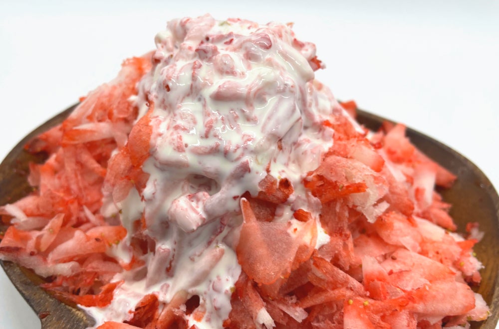 新鮮な時期に収穫したそのままを削った【新商品削りあまおう】を是非、みなさまに食べていただきたい。