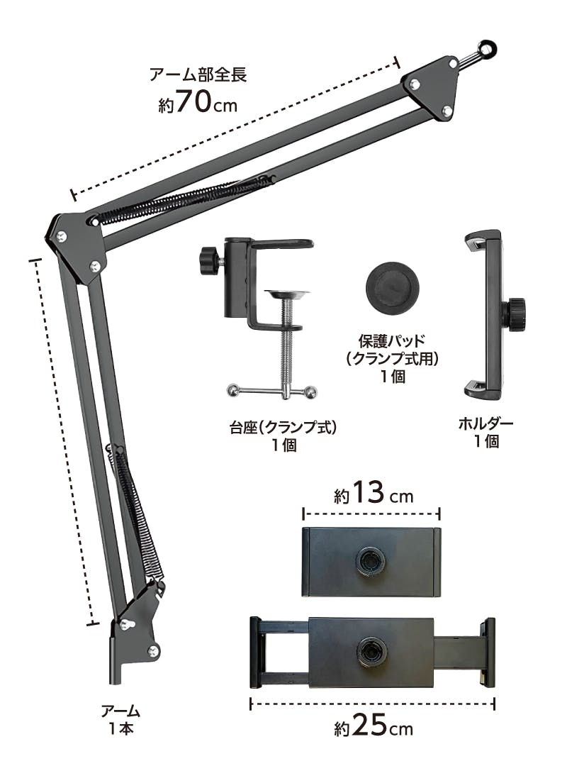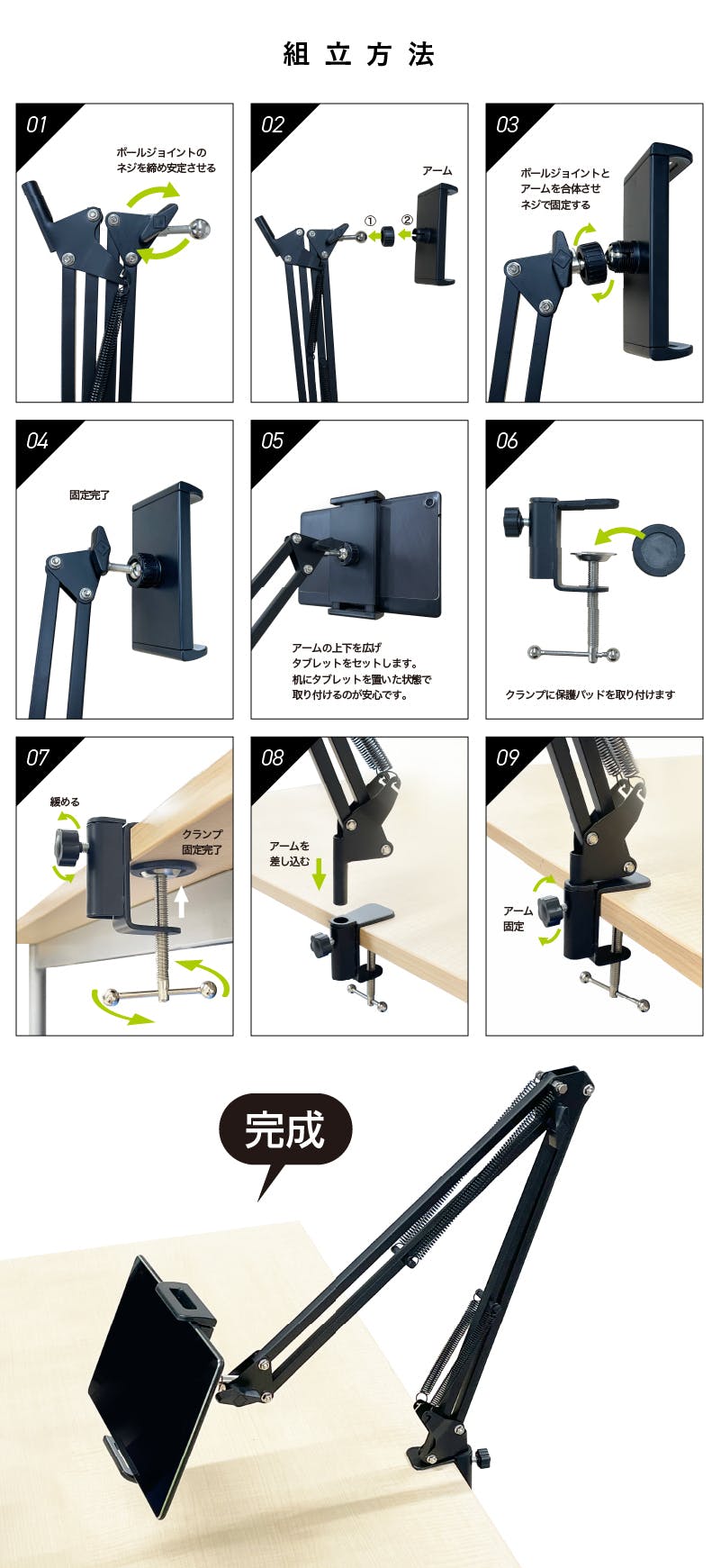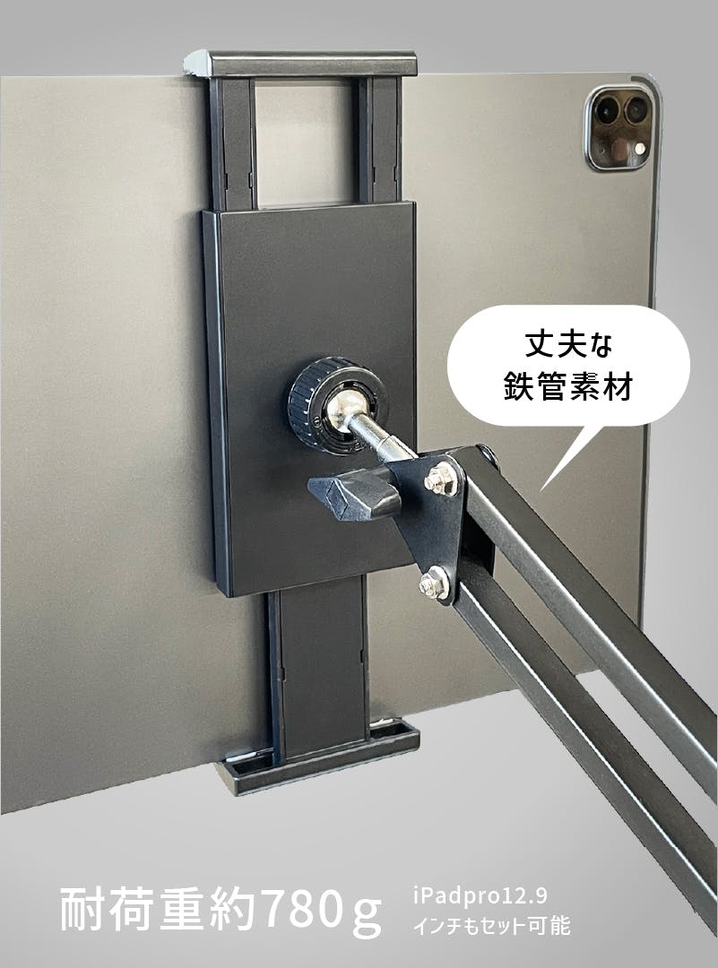 端末の挟み部分は、ボール式になっているので360度回転できるので、縦・横はもちろん寝ながら使用する際など、姿勢に合わせて調節可能です。