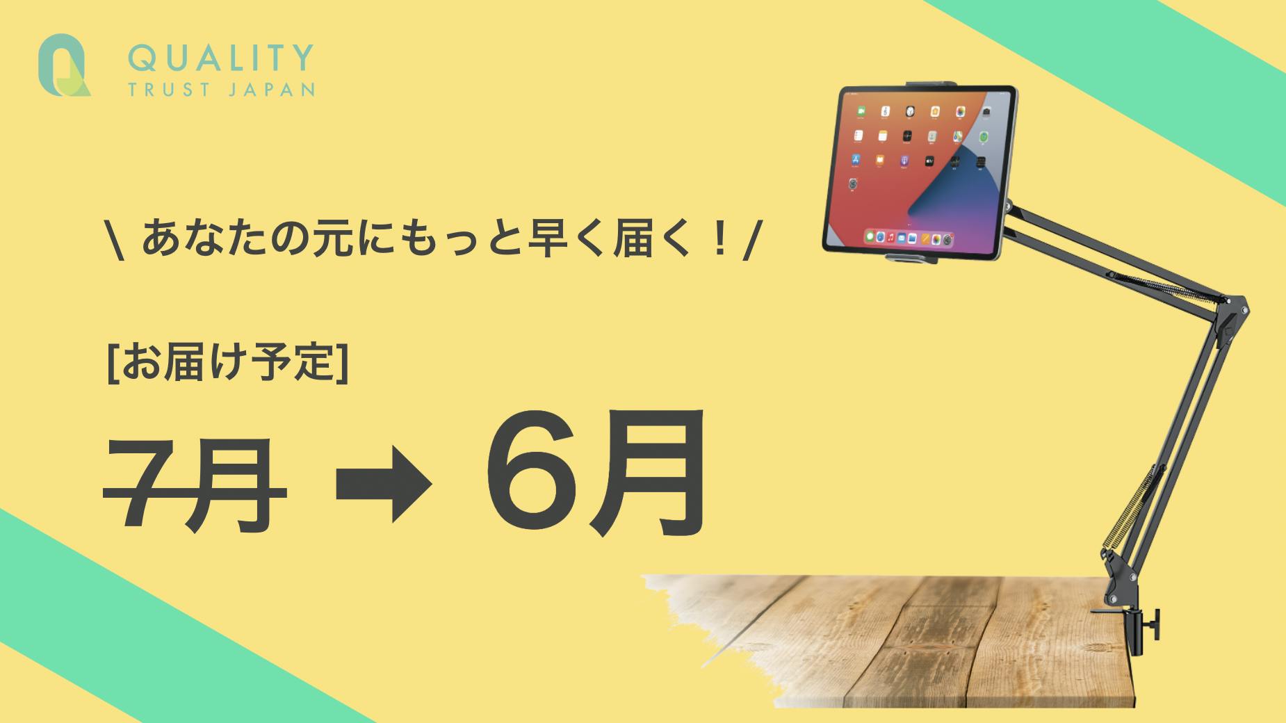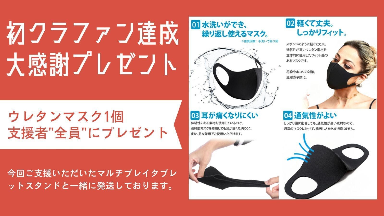 2022/06/08 12:27リターン発送が完了いたしました!「デスクワークやゲームプレイに最適!タブレットアームスタンド」プロジェクトオーナーのQUALITYTRUSTJAPANです。この度はご支援いただきまして誠にありがとうございます。ご支援されたリターンの発送手続きが完了いたしましたので、ご報告させていただきます。リターンがお手元に届くまで、今しばらくお待ちくださいませ。支援者様全員にウレタンマスクをプレゼント!また、今回初めてのクラウドファンディング企画にも関わらず、多くの方にご支援いただき、目標金額320%を達成することができました。SNSで拡散をしていただいた方々、商品紹介を快く受けてくださったインフルエンサーの方々、ご購入いただいた方々、皆さまの温かいご支援おかげです。皆さまに少しでも感謝の気持ちをお伝えできればと思い、今回ご支援いただいた皆さまに、「ウレタンマスク」をプレゼントさせていただくことにいたしました。タブレットスタンドに同封しておりますので、ご活用いただけますと幸いです。改めて、ご支援いただきまして誠にありがとうございます。今後とも、どうぞよろしくお願いいたします。 もっと見る