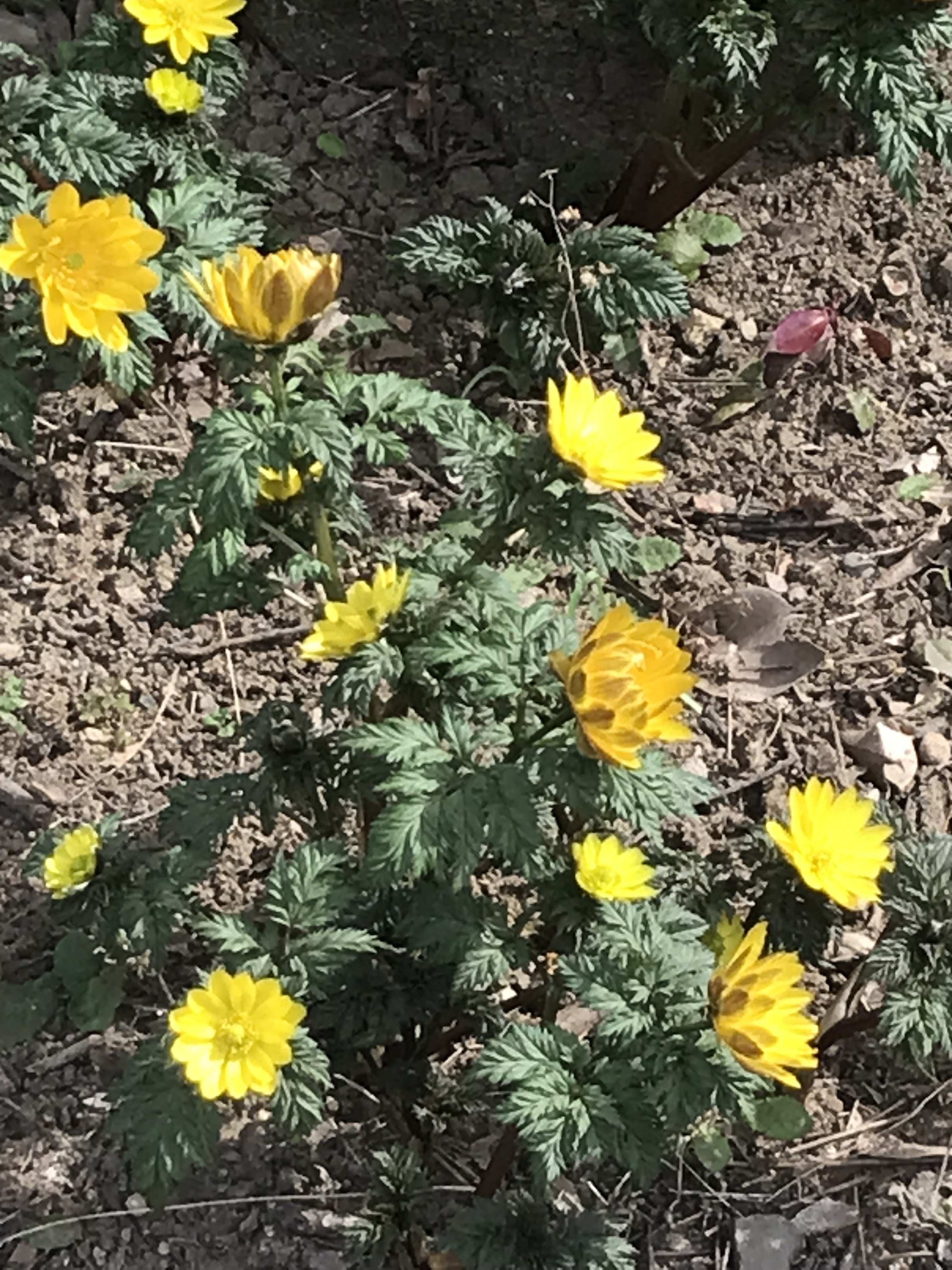 隣家の白梅と紅梅が空に向かってバンザイしているように一斉に花開きました(^O^)/我が家の福寿草も一斉に背伸びして咲きました(^^)/