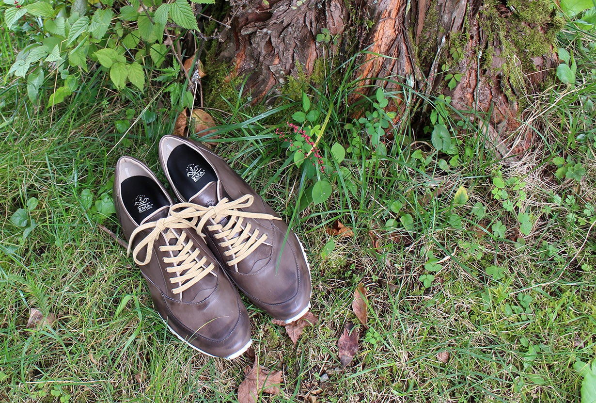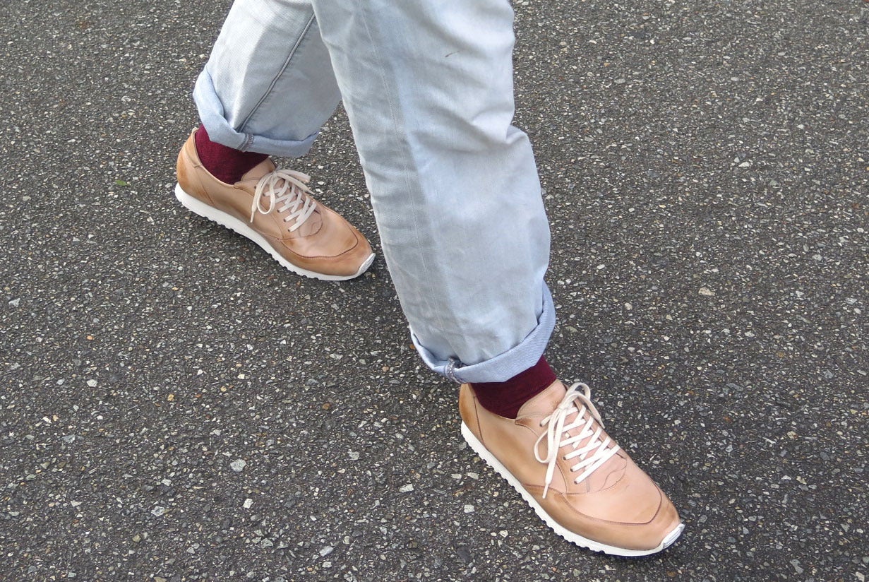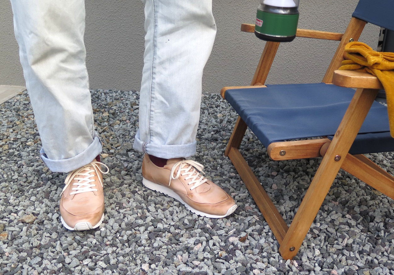 ヌメ革本来の風合いを生かしワックスにてバフ(焦がし加工)を施すことで、”大人のレザースニーカー”をデザインしました。
