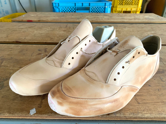 ※ブラックのみ色の特性上「焦がし加工」はございません。他の革靴と同じように磨いていくことで独自のツヤが出ます。