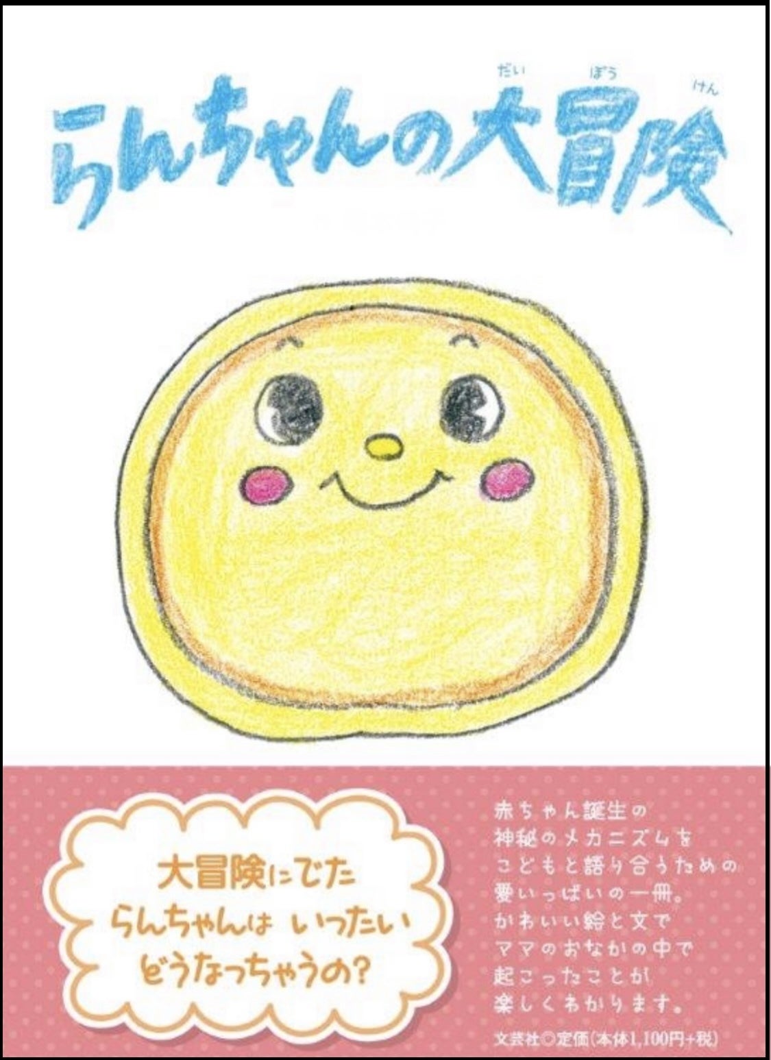 『らんちゃんの大冒険』は、らんちゃんが卵巣を出発して、「せいし」の大群と出会って「じゅせいらん」になり、ママのおなかの中でひと月ごとに成長していく様子を描いた絵本です。