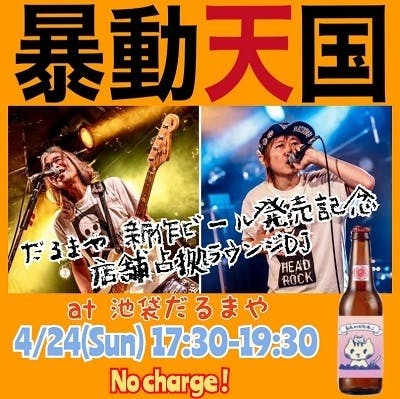 2022/04/04 13:422022年4月24日(日)■だるまや/イケブクロ ブルーイングオリジナルビール第二弾「しあわせなねこ」発売記念ラウンジDJイベント開催決定!■『暴動天国 店舗占拠ラウンジDJ』●開催日時:2022年4月24日(日)17:30~19:30●開催場所:だるまや店内(東京都豊島区東池袋2-59-7 松山ビル1F https://darumaya.to/ )前日(4/23)発売の、出来立てホヤホヤの新作ビールに舌鼓を打ちながら、HEADROCKのナミジンと元有頂天のちゃちゃまるによるDJユニット「暴動天国」の流す音に身を委ね、だるまやの店内でハッピーな時間をともに過ごしましょう!◎「ラウンジDJ」とは...クラブで開催しているDJのようなものではなく、どちらかと言えばお酒を飲みながら話をする場やバーなどで会話のBGMとして落ち着いた音量で曲をかけるDJイベントです。★絶対おトクな、開催当日限定キャンペーンを店内で開催します。★参加費無料!★出入り自由!(店内通常営業しております)◎レコード店でビールを味わう「異空間感覚」を楽しみに、ぜひお越しください。 もっと見る