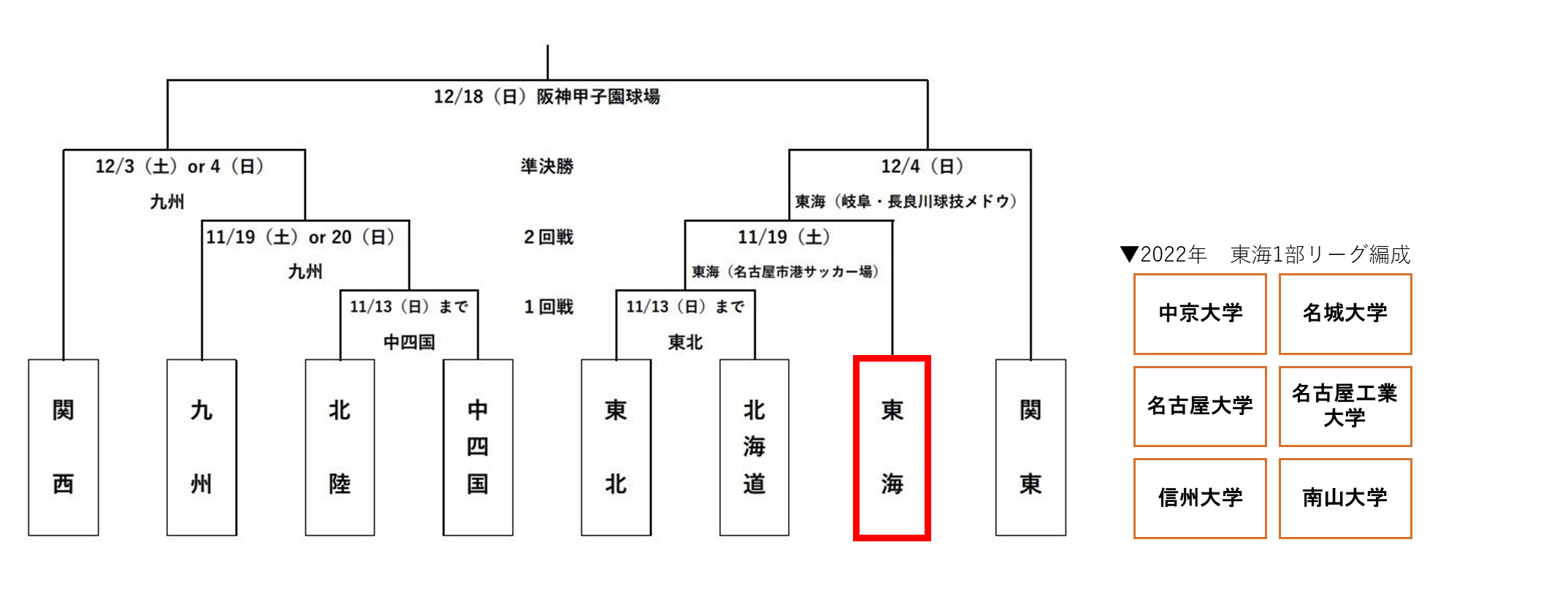 - 今年から東海地区代表は勝ち進むことで関東地区代表との試合を行うことが想定されます。そのため、関東の強豪校にもスカウトをしなければなりません。