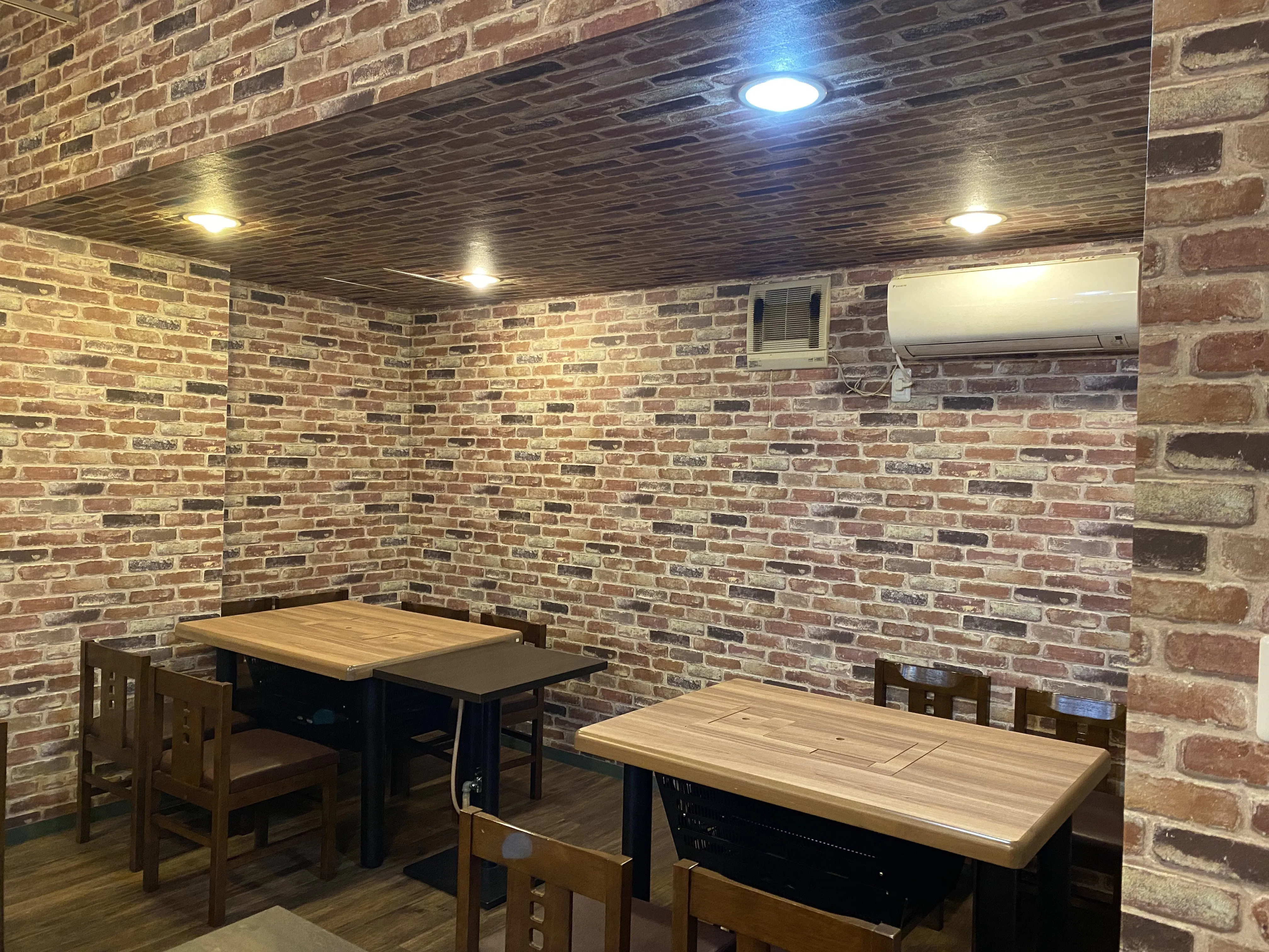 アットホームな空間・・・落ち着いた暖色に囲まれ、何だか家で焼肉を楽しんでいるような空間に。