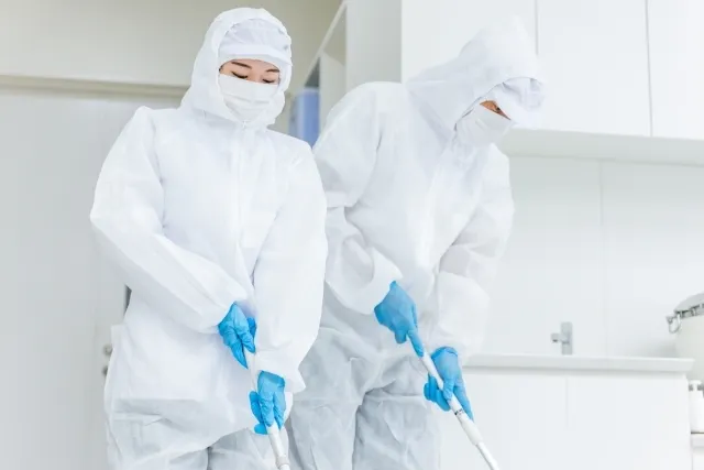 感染予防のための定期的な消毒に加え、感染者が出た場合は、施設内の共有部分や手が触れる可能性がある場所をすべて消毒しなければなりません。