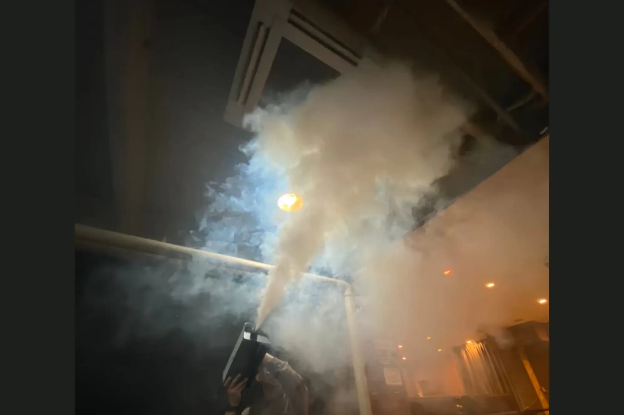 一番の大きな違いは、その除菌方法。お風呂の燻煙剤などと同じように煙(ナノ単位のミスト)を使うことで、細かい部分の除菌抗菌が可能です。これまでの方法では行き届かなかったエアコンの内部をはじめ、手の届かない奥の奥まで届きます。