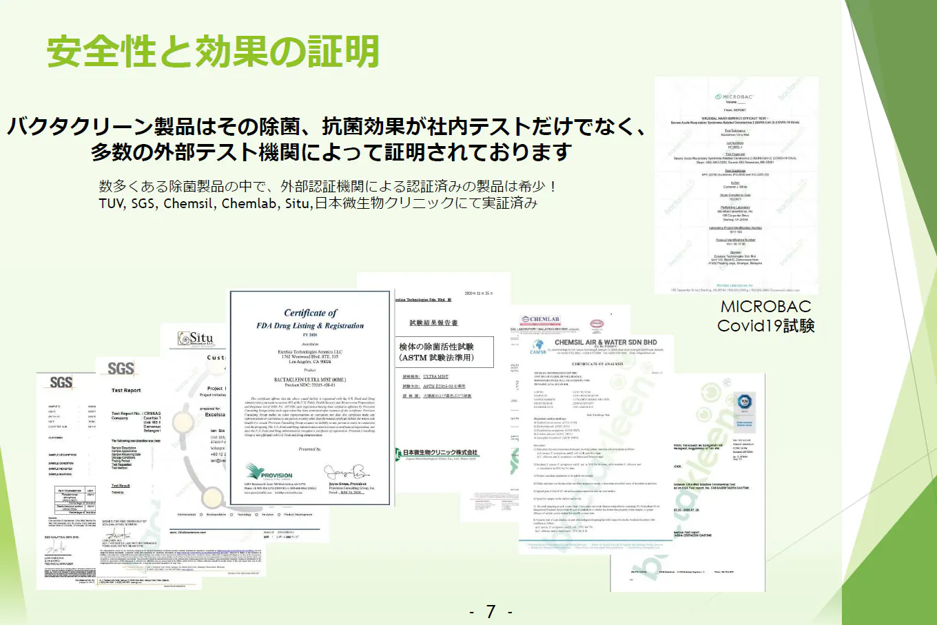 施工した時だけでなく、効果が持続している間は菌やウイルスを不活性化することが、世界的な様々な第三者検査機関で認証されています。