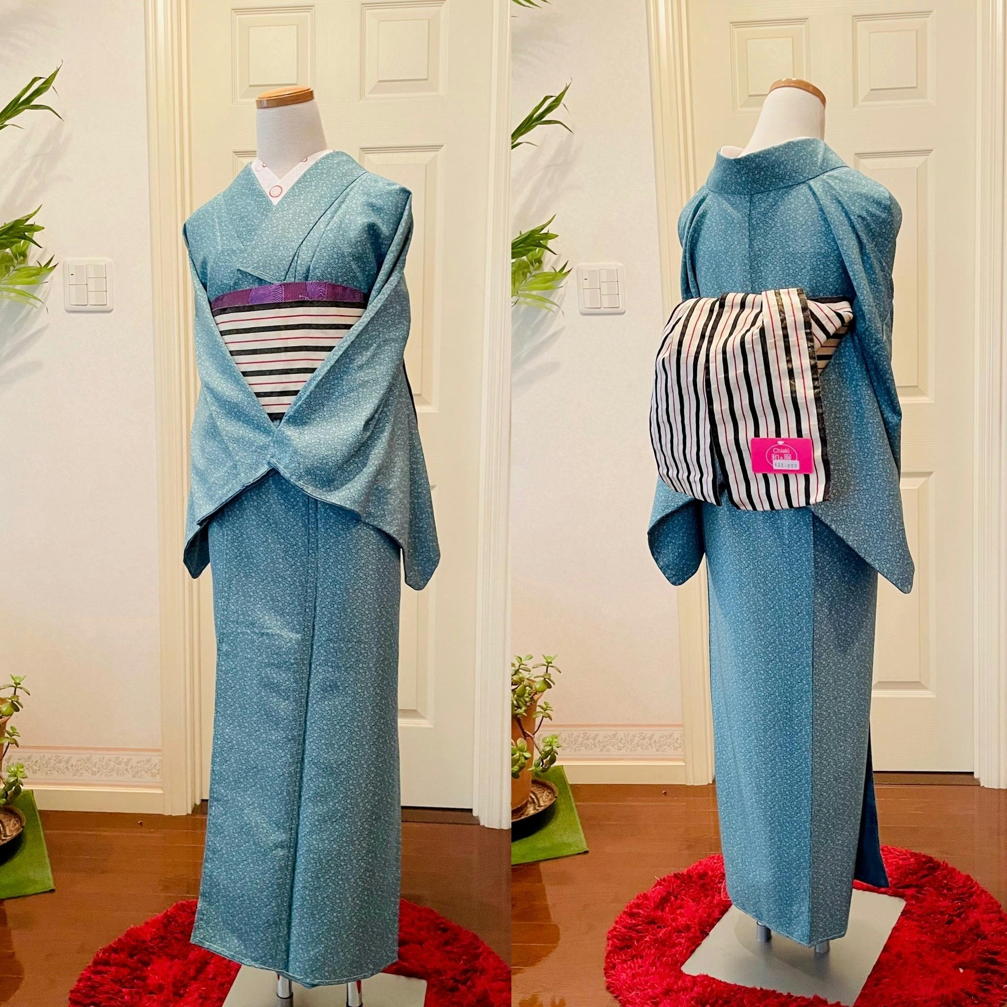 えり、着物上下、帯の3点セット 通常税込価格77,000円のところを67,000円(送料込)でお届けします。