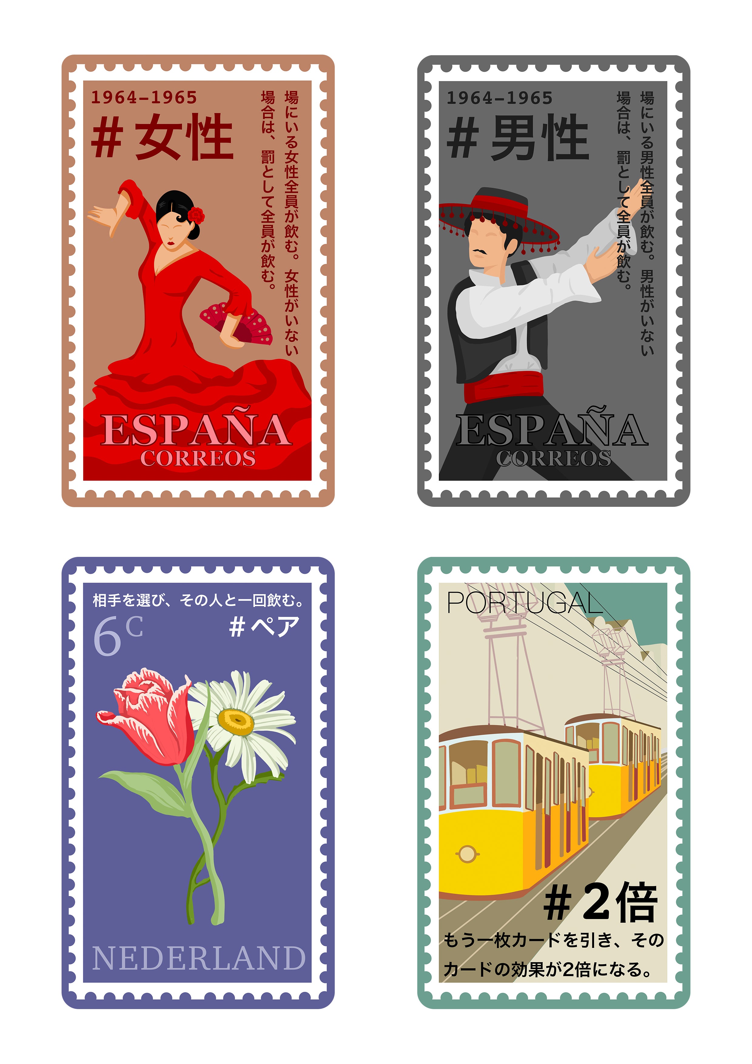 ヨーロッパ風のデザインが施されており、各デザインはカードの指示内容と繋がっています。