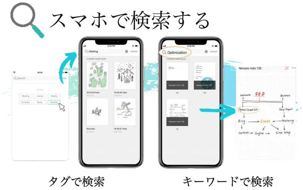 DIGIPEN/B-Noteならそんなお悩みは解消できます!アプリと連携し保存した内容は、以下2通りの方法で検索できるため、