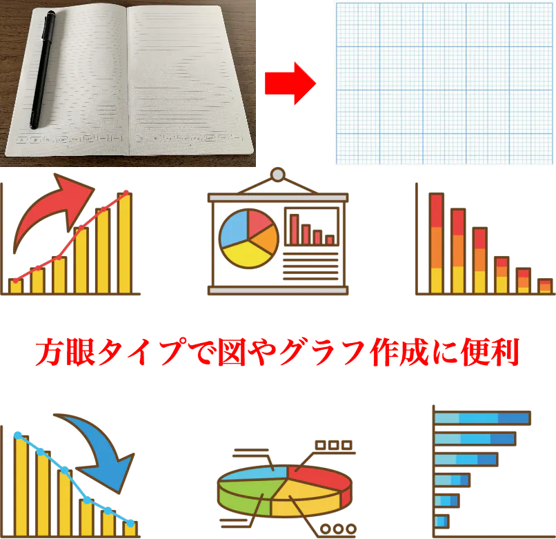 紙面は方眼入りのため、直線、グラフが描きやすい仕様です。