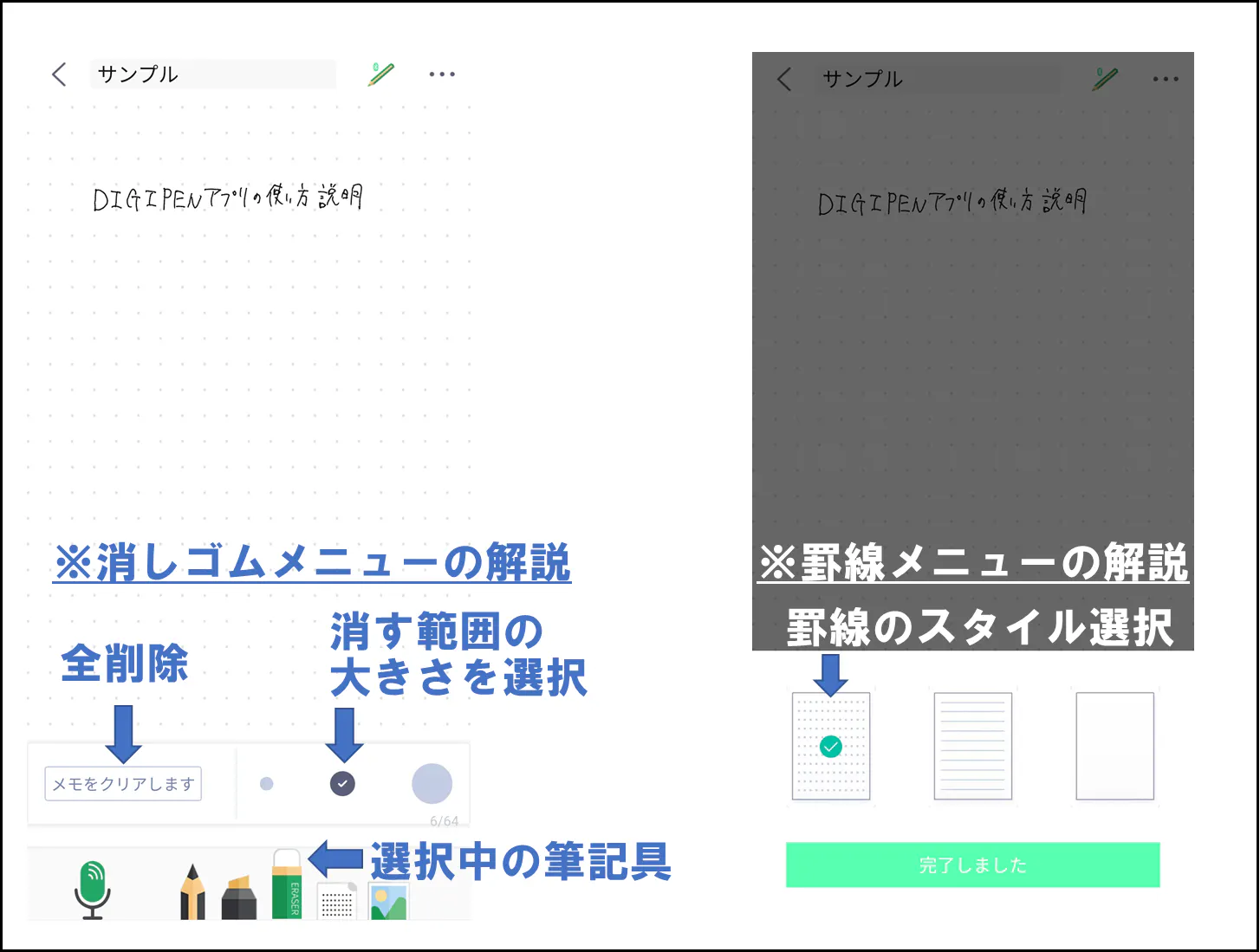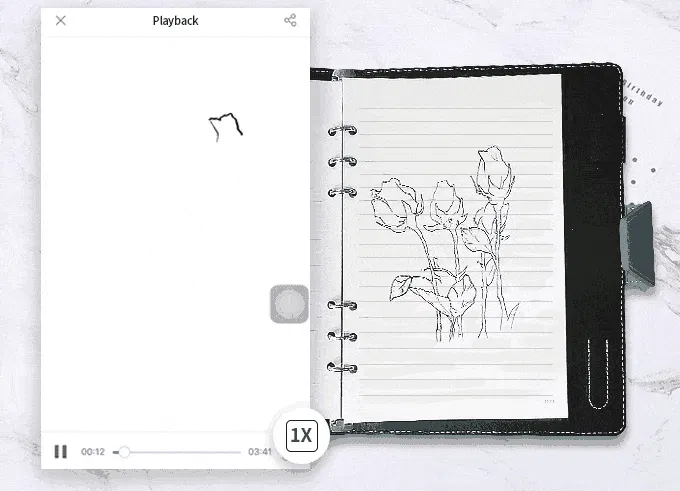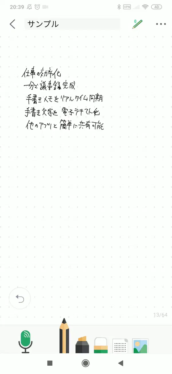 DIGIPENに手書きした内容を専用アプリに同期しデジタル化すれば、手書きした過程をリプレイ可能です!