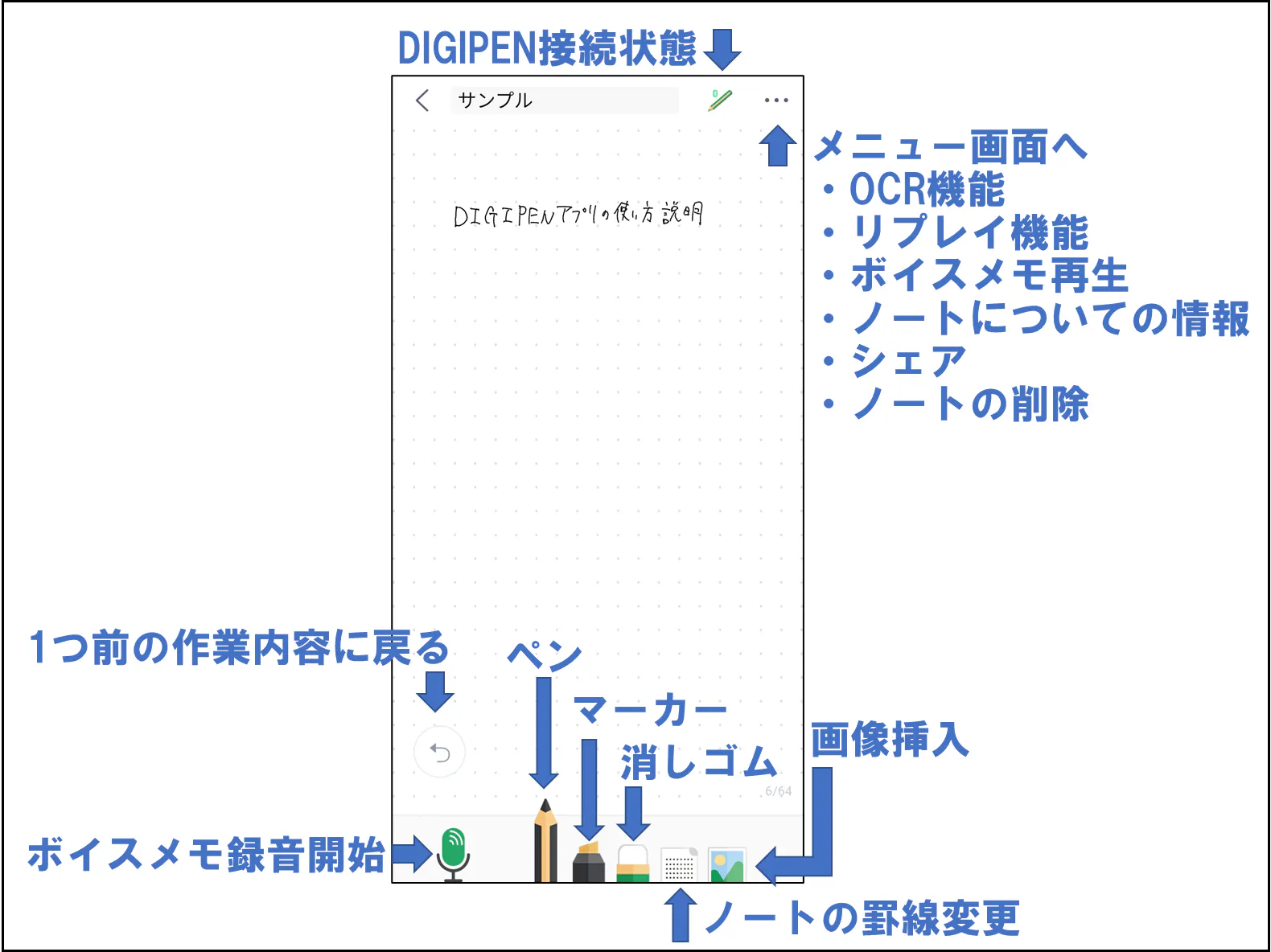 万が一、手元にスマホやタブレットが無くてもDIGIPEN本体にいったん保存しておき、後から同期できるため、心配無用です!