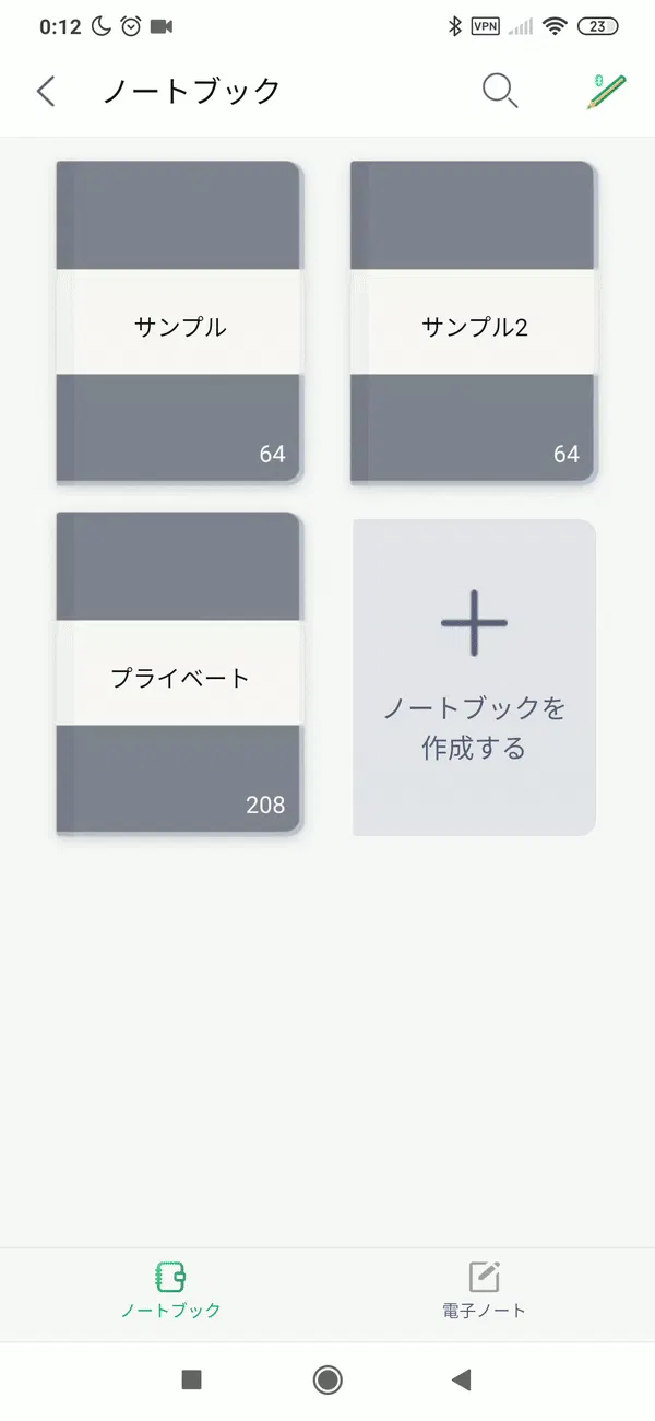 また、ノートはアプリと連動でき、下側のボタンをタッチすればアプリ内の操作もできます。