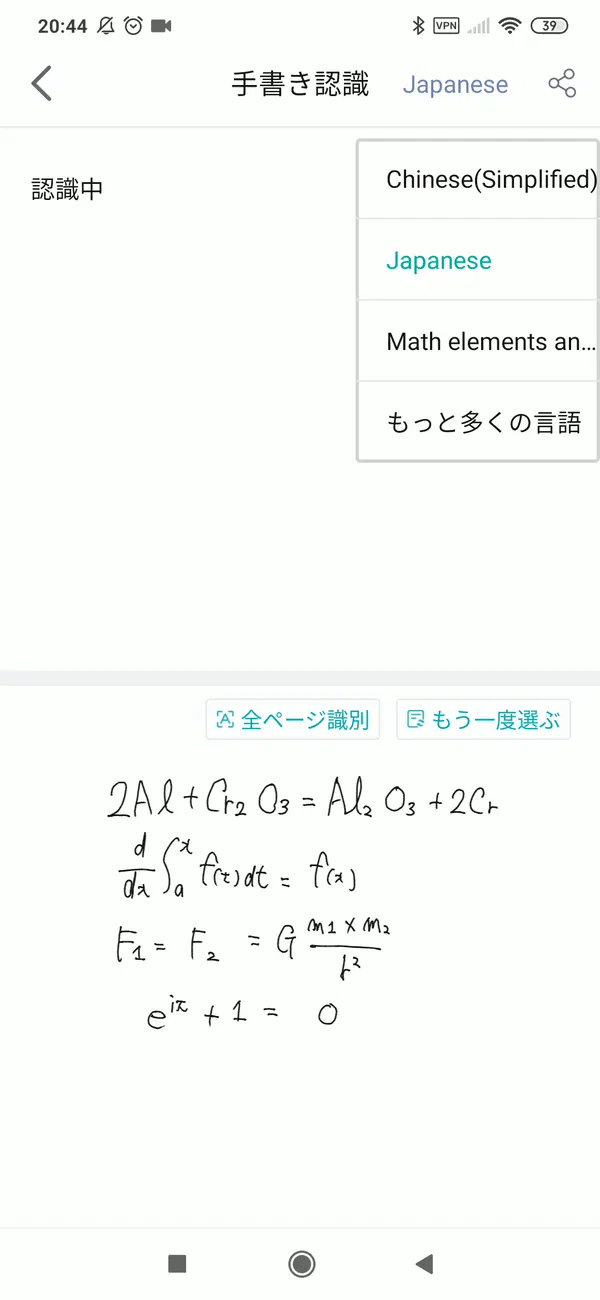 文章の翻訳だけではなく、化学反応式や数式も認識する機能も搭載しています。