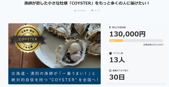 昨日からスタートしたクラウドファンディングは開始2日目にして、【13名の方から、130,000円のご支援】が集まりました!