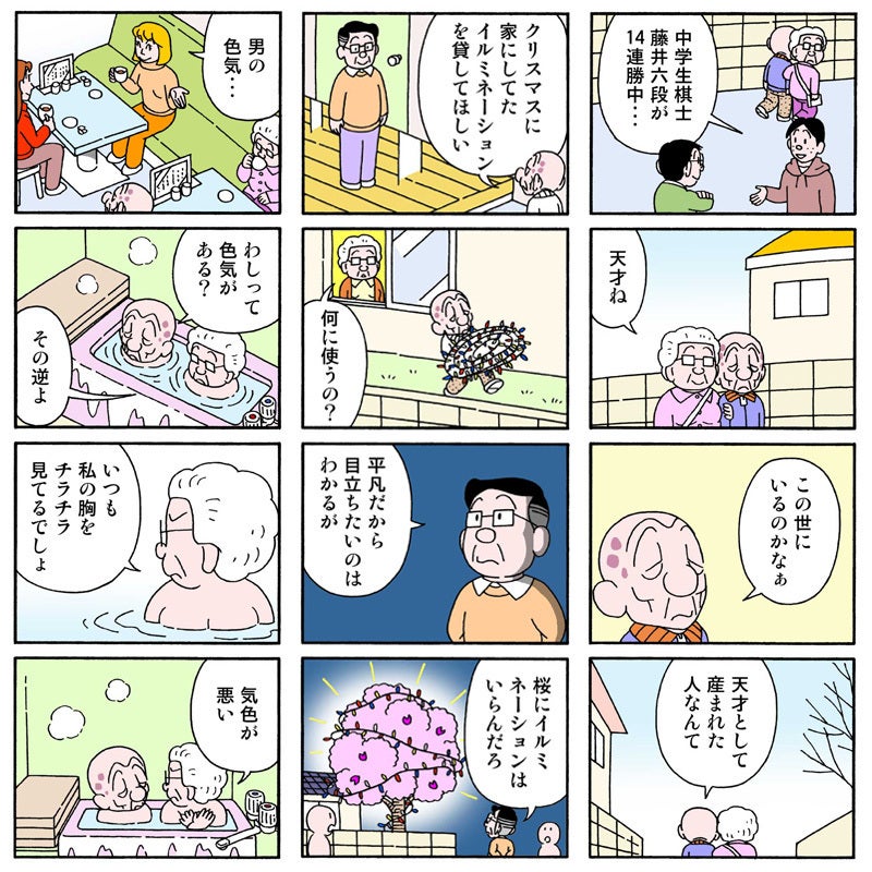 仲むつまじい老夫婦と、2人を取り巻く高齢者仲間やその家族らの日常をユーモアたっぷりに描いた作品です。高齢の田中徳男と、妻・春子が主人公。ほのぼのとした日々の暮らしをはじめ認知症や終活、入院生活など高齢者が直面する問題まで、さまざまなテーマを取り上げています。
