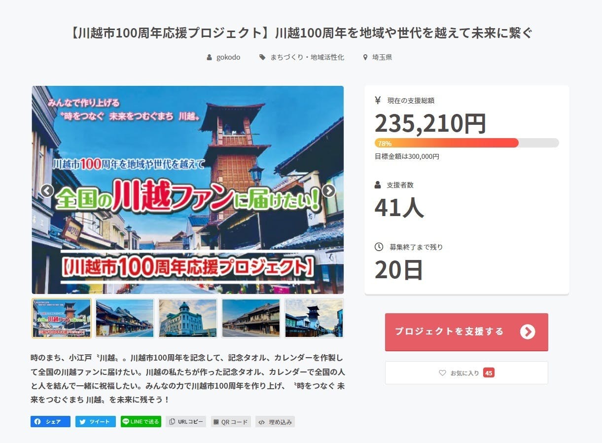 ここからは後半戦スタート!まだまだこれからです!私たちの願い、想いは支援金を集める事ではありません!川越市民はもちろん、少しでもたくさんの方に『川越市100周年』をお届けする事!全国の川越ファンをはじめ、川越にゆかりのある方に『川越市100周年』をお届けして川越を感じてもらいたい!川越を思い出してもらいたいという事です!その為に後半戦、支援金ではなく、100周年にちなんで『支援者100人』を目指します!