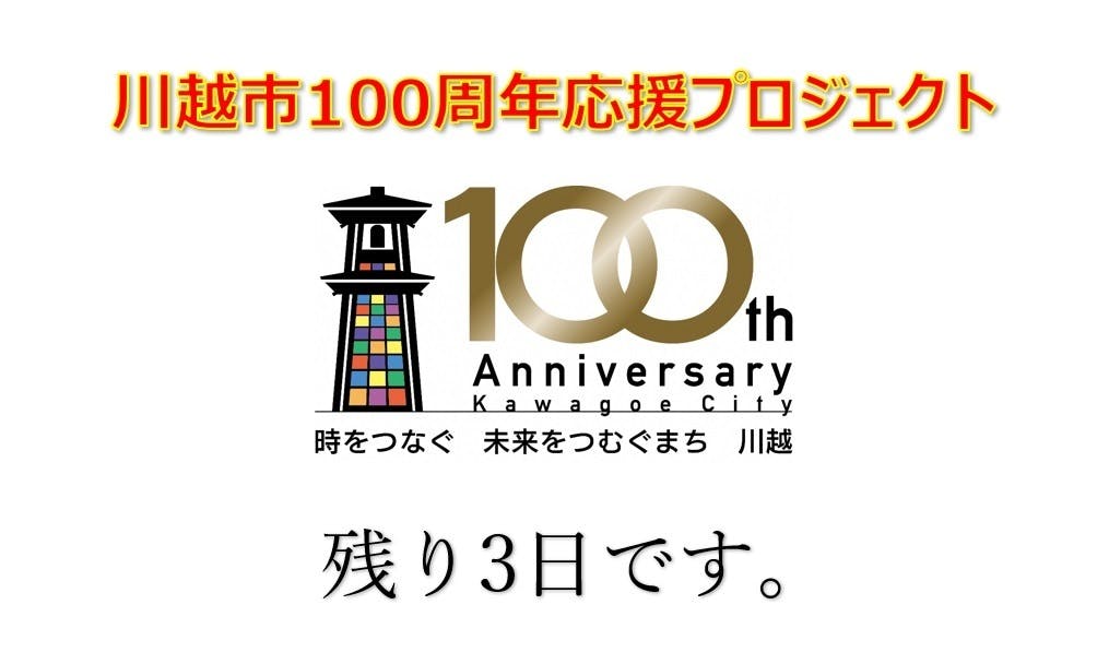 ひとりでも多くの方に〝川越市100周年〟をお届けするために、残り3日、引き続きご支援、応援いただけると嬉しいです!私たちも最後まで頑張ります!