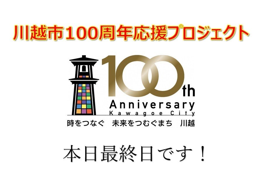 5月22日、本日23時59分59秒でクラウドファンディングによるプロジェクト、【川越市100周年応援プロジェクト】が終了します。