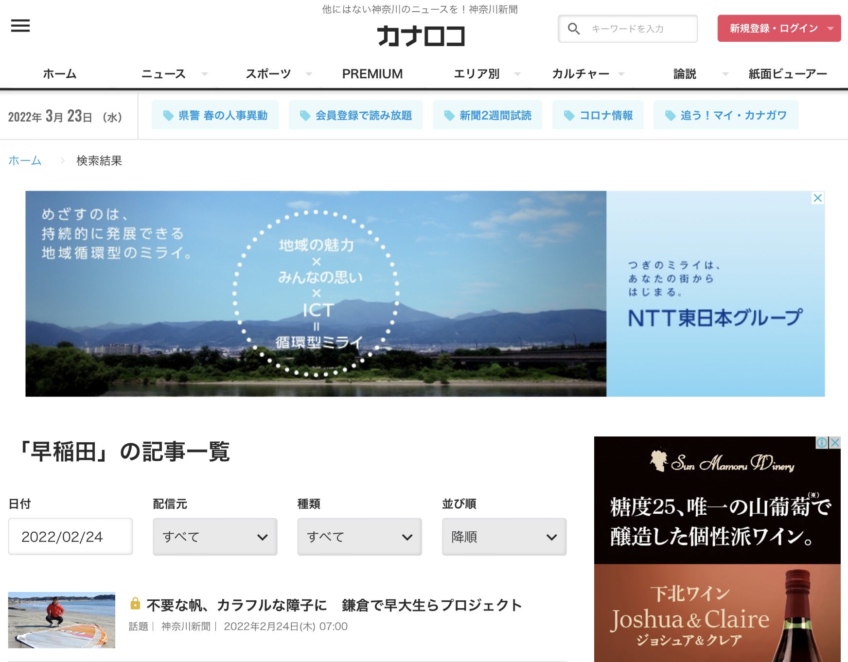 ・早稲田大学ウィンドサーフィン部所属部員のセール(帆)に協賛掲載。