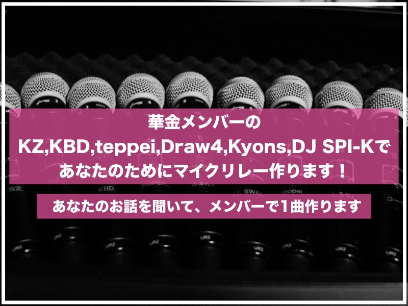 *【華金メンバーのKZ,KBD,teppei,Draw4,kyons,DJ SPI-Kであなたのためにマイクリレー作ります!】/¥250,000